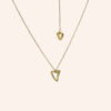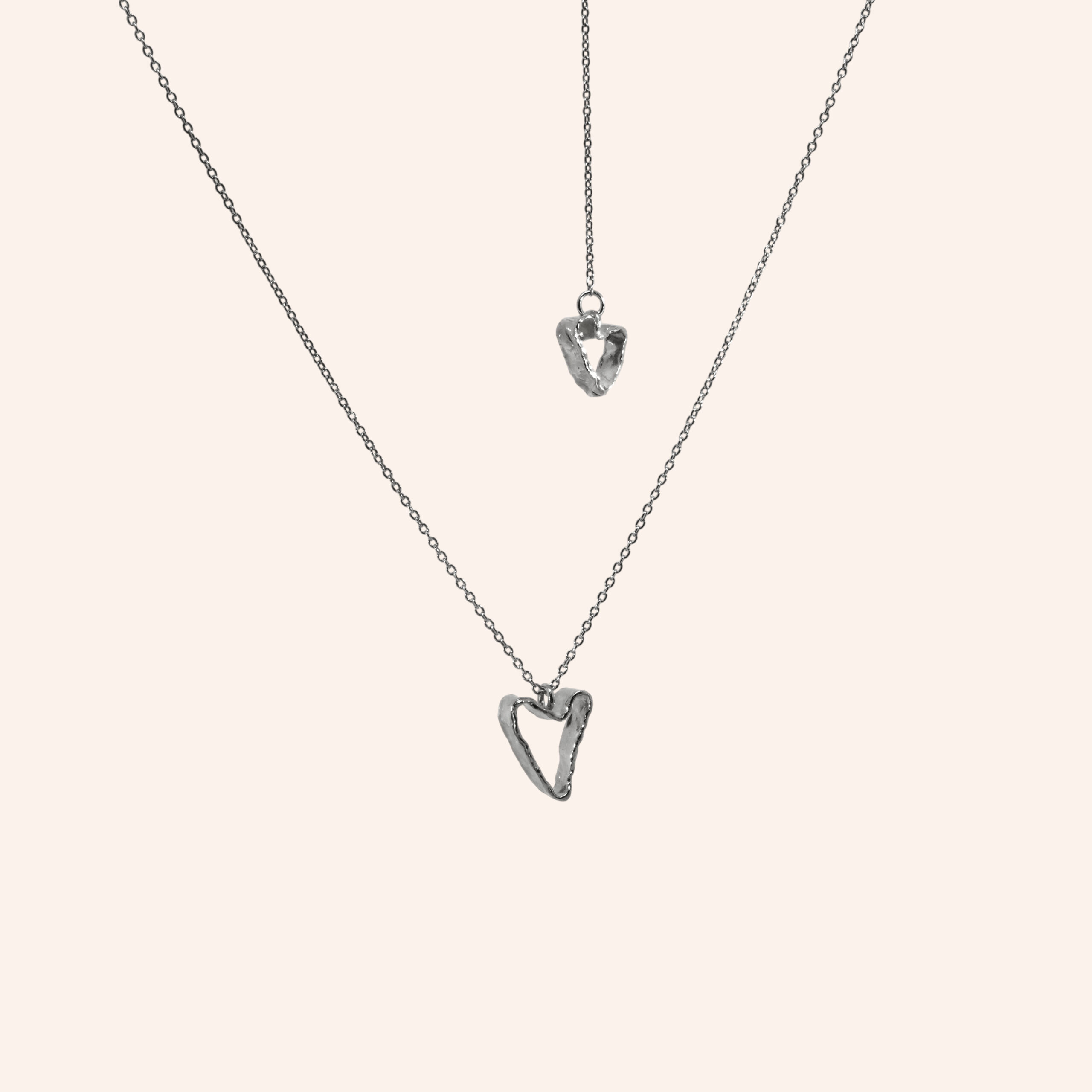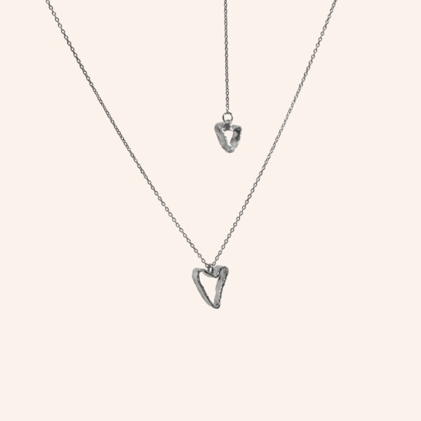 Valentine’s Day 2026 necklace consists of a heart on the front and one that falls on the back, it can be worn both ways.